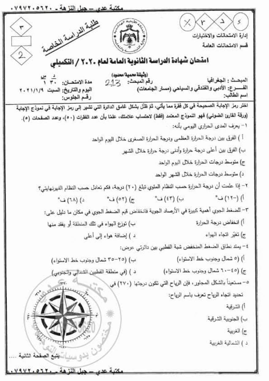 22 hours ago · أقوى مراجعة في ليلة امتحان الجغرافيا السياسية بالإجابات للثانوية العامة 2021. هذا وكانت الكثير من مواقع التواصل الاجتماعي والسوشيال ميديا قد تداولت في الساعات الاولى من صباح اليوم الخميس بعض الصور المتداولة لامتحان الجغرافيا، وقد زعمت هذه الصفحات أن هذه الصور. امتحان الجغرافيا التجريبى الصف الثالث الثانوى يونيو ٢٠٢١ من موقع الوزارة. Jul 04, 2021 · انتهت منذ قليل، لجنة مادة الجغرافيا لطلاب القسم الأدبى، فى امتحان الثانوية الأزهرية، فى 609 لجان يؤدى بها الامتحانات نحو 113 ألفا و473 طالبا وطالبة، حيث تقرر أن يؤدى طلاب القسم العلمى امتحاناتهم فى يوم والقسم الأدبى فى يوم آخر، وذلك منعاً للتكدس تطبيقاً للإجراءات الاحترازية. 1 day ago · بدء منذ قليل، طلاب الثانوية العامة (الشعبة الأدبية)، أداء امتحان الجغرافيا وسط إجراءات احترازية مشددة لمواجهة فيروس كورونا.